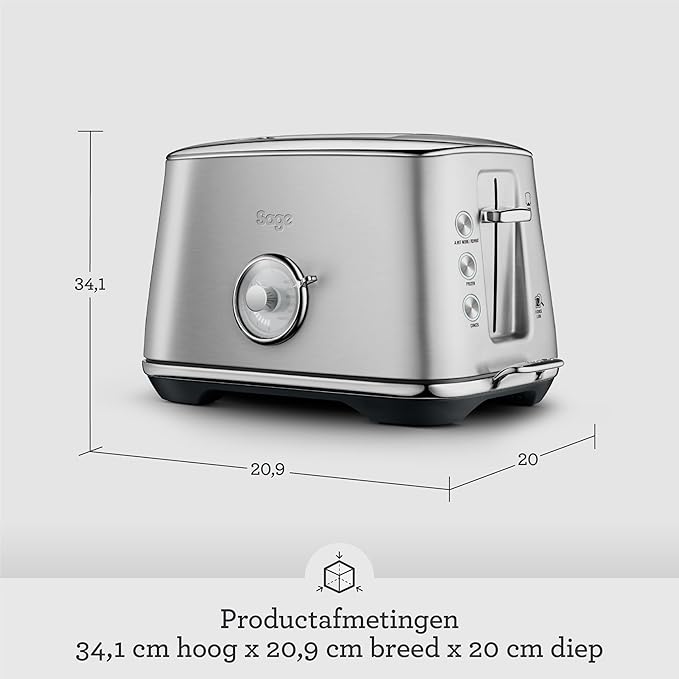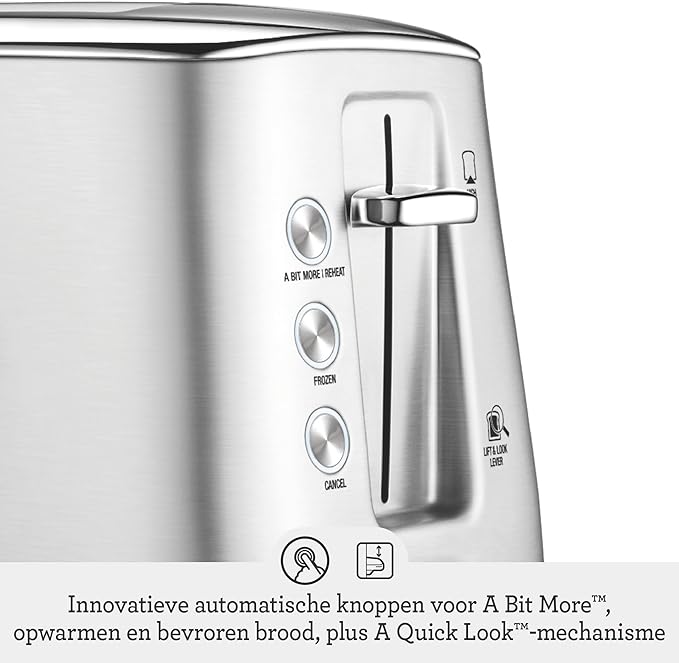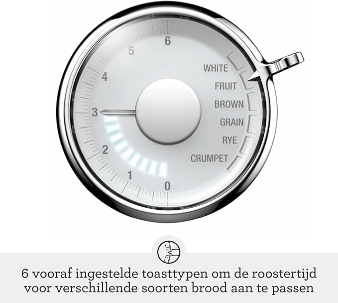 Toast Select Luxe زمان تست برای هر نوع نان را تنظیم می کند. برای بررسی اینکه آیا کار تمام شده است. "کمی بیشتر" را فشار دهید و فقط به آن کمی بیشتر زمان بدهید .... پیشرفت تست را با نشانگر شمارش معکوس LED دنبال کنید. ساخته شده از فولاد ضد زنگ براق با روکش فلز درجه یک و کروم