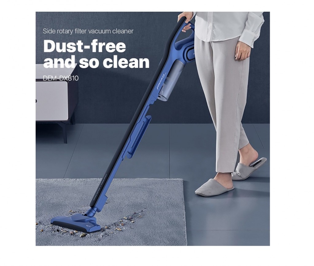 جارو برقی Deerma DX810 از طراحی دومنظوره بهره میبرد. کاربر امکان استفاده از این جارو برقی را در خانه یا خودرو دارد. بدنه خوش ساخت، موتور 600 واتی با قدرت مکش بالای 16 کیلوپاسکال، حجم 0.8 لیتری مخزن، سیستم فیلتر دوگانه و 3 برس مختلف از جمله نقاط مثبت این محصول هستند.