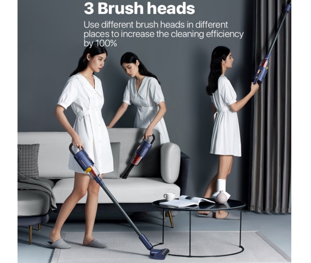 جارو شارژی شیائومی Xiaomi Deerma VC811 Handheld Wireless Vacuum Cleaner توان 100 وات به جای استفاده از جاروهای قدیمی سیمی، این بار با خرید جاروهای شارژی ایستاده مثل جارو بی سیم شیائومی Deerma Handheld Wireless Vacuum Cleaner VC811 کارتان را راحت کنید. این جارو که به جاروی عصایی یا ایستاده هم معروف است، با باتری کار می کند و به راحتی قابل حمل است. این جارو حدودا 2 کیلوگرم وزن دارد: اما به دلیل طراحی هوشمندانه و محل درست مرکز ثقل موقع بلند کردن سنگینی زیادی حس نمیکنید. توان و باتری برای استفاده راحت تر یک باتری 2200 میلی آمپر ساعتی داخل جارو برقی شیائومی درما VC811 قرار داده شده که میتواند در هر بار شارژ تا 30 دقیقه کار کند. موتور این دستگاه از نوع برسی بوده دارای 2 حالت استاندارد/زیاد است که در هر حالت جارو برقی VC811 شیائومی میتواند برای 30/18 دقیقه کار کند. با مکش 5.5KPa و توان 100 وات جارو شارژی شیائومی هر چیزی از موی گربه تا ذرات کوچکتر را با نویزی کمتر از 70 دسی بل جمع آوری میکند. فیلتر تقویت شده در مخزن جارو شارژی شیائومی درما مدل VC811 از دو فیلتر HEPA برای جمع آوری ذرات ریز میکرونی و فیلتر هوای میکرو استفاده شده که می تواند هوا را از گرد و خاک جدا کند. با کمک این فیلترهای دوگانه خاک ها با فرایند سانتریفیوژ به فیلترهای مشبک میچسبند تا هوای خروجی هیچ گردی را وارد محیط خانه شما نکند سری های متفاوت شما میتوانید سری های متفاوت را به جارو برقی شیائومی VC811 وصل کنید و در محیط های مختلف از آن استفاده نمایید. سری اصلی بیشتر برای جارو کشیدن سطوح صاف و بزرگ مانند کف آشپزخانه و اتاق نیاز است. سری 2 در 1 برای جارو کشیدن فضای داخل ماشین، روی مبل و میز مناسب است که در حالت برس دار میتواند سطوح پرزدار را نیز برایتان تمیز کند.