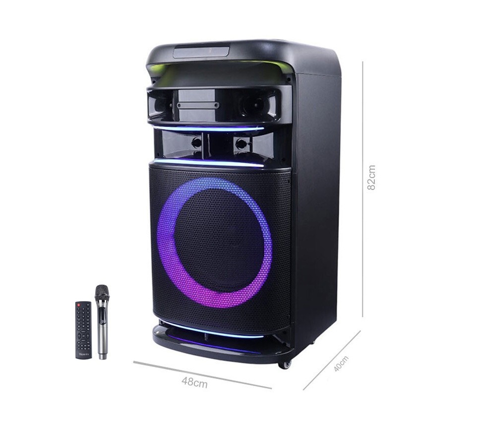 بدنه مقاوم ساخته شده از پلاستیک و فلز، دارای نمایشگر LED جهت اطلاع از وضعیت کارکرد، اقلام همراه شامل کابل برق، ریموت کنترل و میکروفون