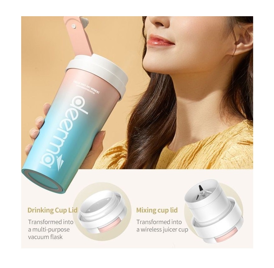 این قمقمه که مخلوط کن هم می باشد دارای 4 تیغه تیز و برنده فلزی است که امکان شستشو نیز دارند، البته برای شستن آنها باید توجه داشته باشید که درب را به طور مستقیم با آب نشویید. به طور کلی این مخلوط کن دارای دو درب است که میتوانید از آنها استفاده کنید، یکی از این دربها برای مخلوط کردن مورد استفاده قرار میگیرد که دارای 4 تیغه نیز هست، درب دیگر برای زمانی است که آبمیوه خود را آماده کردهاید و وقت نوشیدن آن است. به این ترتیب میتوانید درب آن را روی ظرف مخصوص قرار داده و هر زمان که خواستید، آبمیوه یا نوشیدنی خود را بنوشید. روی این درب یک درب کوچک دیگر نیز قرار داده شده تا مانند قمقه بتوانید محتوای داخل آن را بنوشید و حتما نیازی به باز کردن کامل درب نداشته باشید. بدنهای که درما یا مواد غذایی درون آن قرار میگیرد از استیل ضد زنگ 304 و دولایه ساخته شده است که مقاومت دمایی بالایی داشته و عایق بسیار خوبی به جهت حفظ دما است. به این ترتیب، کمپانی شیائومی ادعا میکند که گرمی یا سردی محتوای داخل این مخلوط کن (دمای آن) تا حدود 6 ساعت حفظ خواهد شد. بنابراین در سفر، موقع تمرین، سر کار و... میتوانید همان دمایی که دلچسبتان هست را استفاده کنید. برای مثال چند قالب یخ درون مخلوطکن گذاشته و پس از چند ساعت با مخلوط کردن آن با آب هندوانه، یک اسموتی دلچسب برای خود آماده کنید. ابعاد میکسر درما برابر است با 91×91×200 میلیمتر و وزنی معادل 600 گرم دارد که از بابت حمل و جابجایی آن مشکلی نداشته باشید. شیائومی برای امنیت این دستگاه نیز تدبیری اندیشیده؛ به این صورت که میکسر تنها در صورتی روشن میشود که شما 2 بار دکمه آن را بزنید. به این شکل میتوانید با خیالی آسودهتر آن را همراه داشته باشید. ظرفی که این مخلوط کن دارد، گنجایشی حدود 300 میلیلیتر داشته و مقداری کافی را برای شما خواهد داشت.