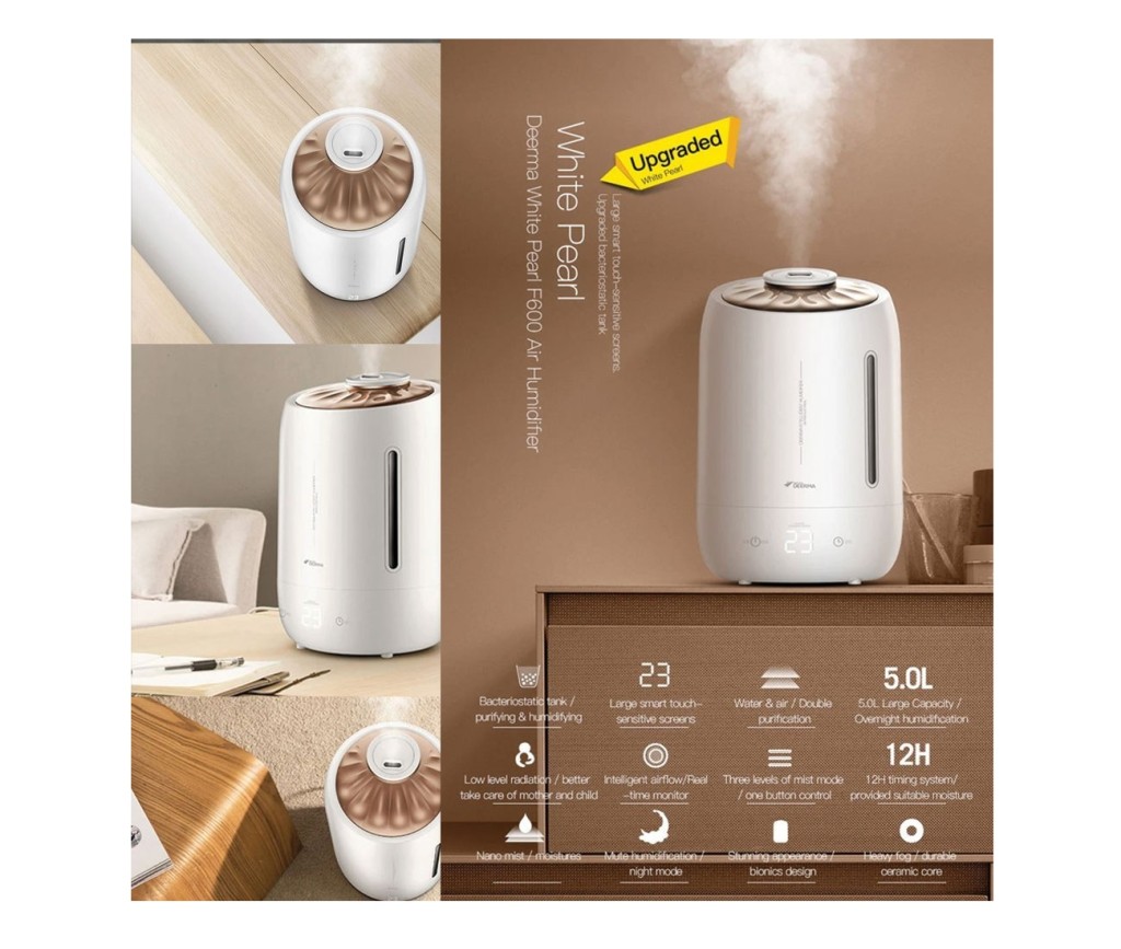 یکی مزیت های این دستگاه پرقدرت این است که در هنگام شب شمارا اذیت نمی کند زیرا بسیار کم صداست و با ایجاد آلودگی صوتی باعث سلب آسایش شما نمی شود میزان صدایی که این دستگاه تولید می کند حدود 36 دسی بل می باشد.از ویژگی های خوب دیگر این دستگاه می توان به میزان مصرف آن اشاره کرد دستگاه Deerma F600 به واسطه یک کابل CN Plug با قدرت ورودی 220V 50Hz به برق متصل می شود و انرژِی مصرفی آن نهایتاً تا 25 وات می رسد که نسبت به یک لامپ 100 واتی تقریباً هیچ مصرف برقی ندارد.Deerma F600 مجهز به فیلتر کربن فعال برای جذب ناخالصی های مضر و تصفیه هوا است.رطوبت ساز Deerma F600 مجهز به فیلتر کربن فعال برای جذب ناخالصی های مضر، تصفیه هوا، آوردن هوای تازه و مفید برای سیستم تنفسی است. علاوه بر این، این فیلتر را می توان برای شستشو با آب جدا کرد و بارها مورد استفاده مجدد قرار داد.سوراخ های لانه زنبوی که روی فیلتر هستش گرد و غبار را جذب می کند مخزن ضد باکتری ABS همراه با صفحه تصفیه دوگانه، از فیلتراسیون و تمیز کردن آب برای توانایی ضد باکتری بالا و قابلیت استریلیزه کردن موثر تا 99.9٪ پشتیبانی می کند.Deerma F600 مناسب برای هر چهارفصل مناسب است.این دستگاه تا 3 سطح مختلف رطوبت را فراهم می کند و به کاربران امکان می دهد 3 سطح مختلف مه را تنظیم کنند. حالت مه 1 برای بهار و تابستان مناسب است، سطح 2 برای استفاده در اتاق های دارای تهویه مطبوع در تابستان مناسب است. در نهایت حالت 3 برای تامین رطوبت در پاییز و زمستان مناسب است. بنابراین، بسته به نیاز هر کاربری، کاربر می تواند به طور خودکار مناسب ترین سطح مه را تنظیم کند.