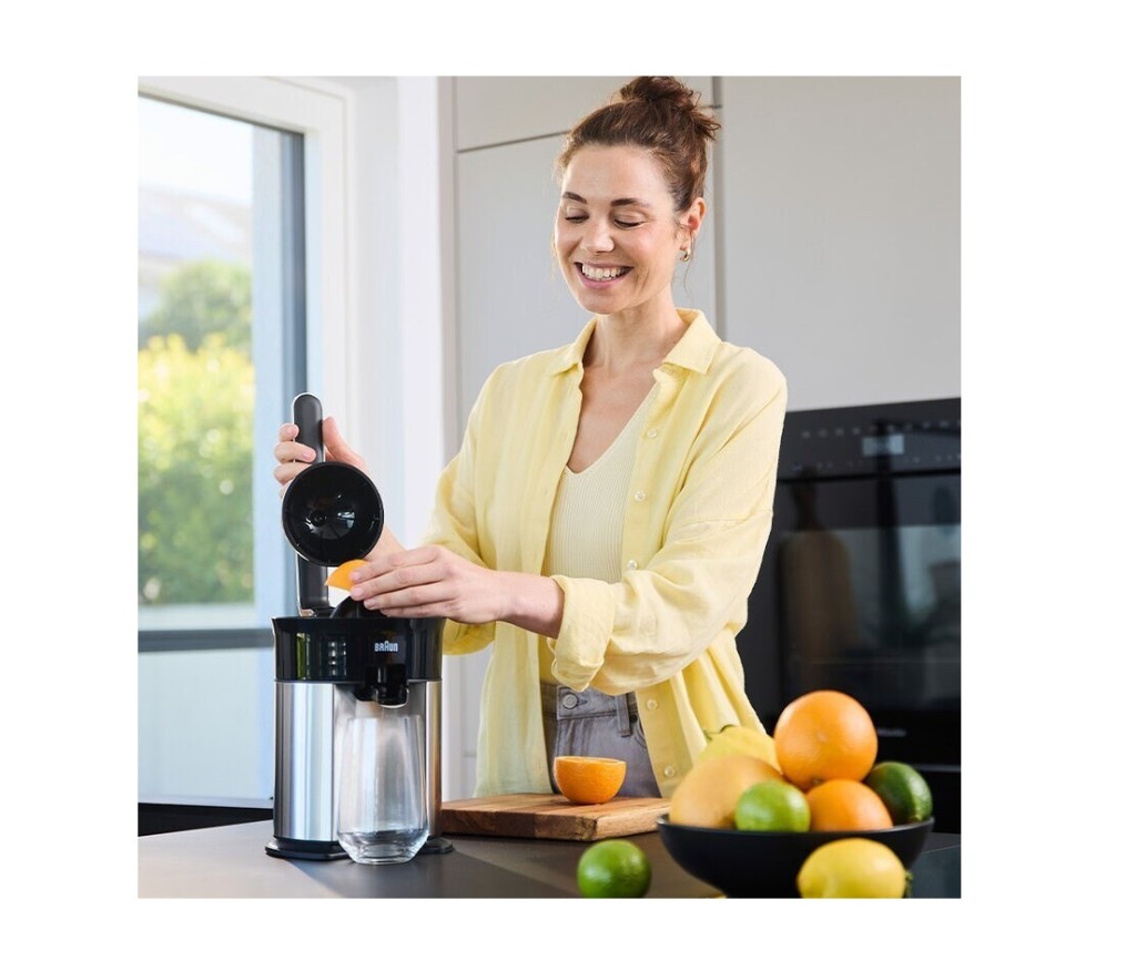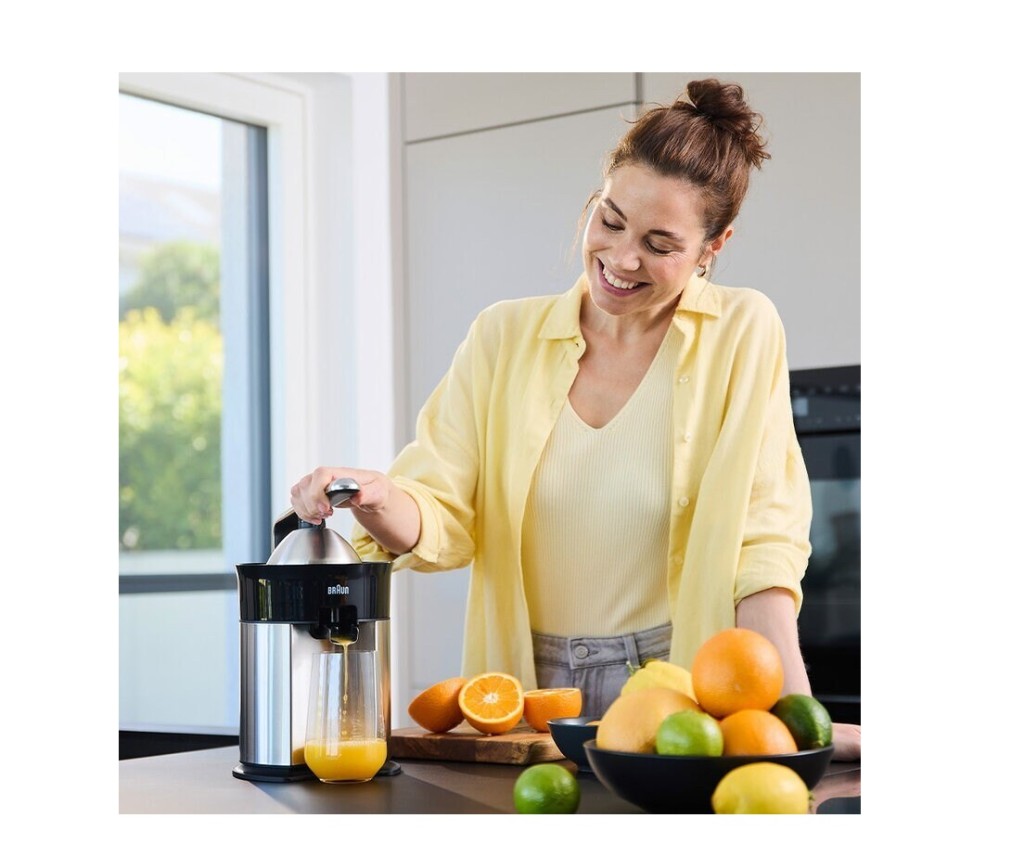 آب مرکبات گیر براون مدل CJ7050 یکی از محصولات مدرن و باکیفیت برند آلمانی Braun است که با طراحی زیبا، عملکردی بیصدا و قدرت بالا، تجربهای لذتبخش از تهیهی آبمیوه تازه را برای شما به ارمغان میآورد. این دستگاه با بهرهگیری از فناوری CitrusQuick 7 و سیستم Energy Smart، در عین مصرف پایین انرژی، عملکردی بسیار قدرتمند و سریع دارد. طراحی بدنهی فلزی و اهرم فشاری از جنس آلومینیوم ریختهگریشده باعث میشود عصارهگیری با کمترین نیرو و بیشترین بازده انجام شود.