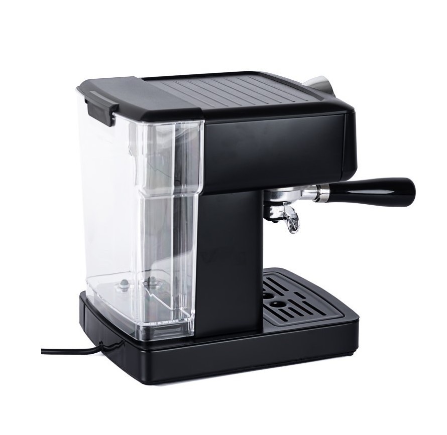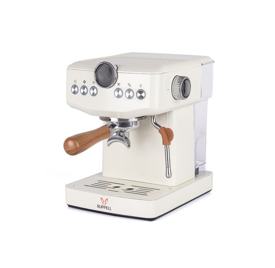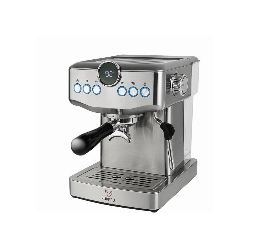 بدنه دستگاه از جنس استیل ساخته شده که مقاومت بالا و ظاهر حرفهای دارد. ابعاد 28×34×28 سانتیمتر و وزن 6 کیلوگرم باعث میشود دستگاه روی میز آشپزخانه ثابت و قابل اطمینان باشد. این ابعاد و وزن تعادل خوبی بین ثبات دستگاه و اشغال فضای مناسب فراهم کردهاند. مخزن آب با ظرفیت 1800 میلیلیتر برای مصارف خانگی چند نفره کافی است. دستگاه فاقد مخازن جداگانه پودر یا دانه قهوه و شیر است اما با استفاده از پورتافیلتر و فیلترهای سینگل و دبل، امکان تهیه انواع نوشیدنیها با دقت و کیفیت بالا فراهم شده است. این اسپرسوساز قابلیت استفاده از پودر قهوه را دارد و مجهز به فیلترهای سینگل و دبل است. این ویژگی به کاربر امکان میدهد حجم و شدت عصارهگیری را بسته به نیاز تنظیم کند. استفاده از فیلترهای متنوع کیفیت نهایی اسپرسو را به شکل قابل توجهی افزایش میدهد.