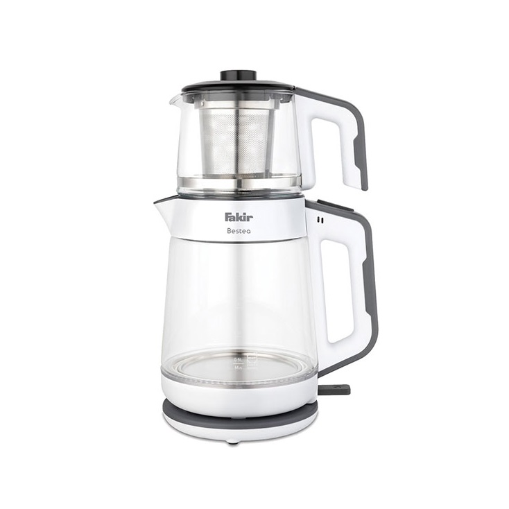 این محصول از دو قسمت کتری و قوری تشکیل شده که به صورت عمودی بر روی هم قرار میگیرند. قوری از شیشه و کتری از فایبر گلاس ساخته شده که ضد رسوب و ضد چربی می باشد. ضمنا لازم به ذکر است که کتری 2 لیتر و قوری 1 لیتر ظرفیت دارد.در ان می توان فقط از کتری هم برای گرم کردن آب استفاده کرد. معمولا زمان جوشیدن آب بسته به میزان اب موجود در کتری از 5 تا 12 دقیقه طول می کشد. بعد از جوشیدن آب، دستگاه خاموش می شود. این چای ساز روهمی فکر مدل BESTEA دارای المنت گرمایشی است که زیر یک صفحه استیل مانند قرار گرفته است. معمولا استیل خیلی دیر رسوب برمی دارد و رسوب آن هم زیاد بر روی خود باقی نمی گذارد. بهتر است این قسمت را با یک پارچه نم دار تمیز کرد. طول کابل برق در آن 1.5 متر است و برای نگه داری کابل از شیار هایی در زیر چای ساز استفاده شده است.