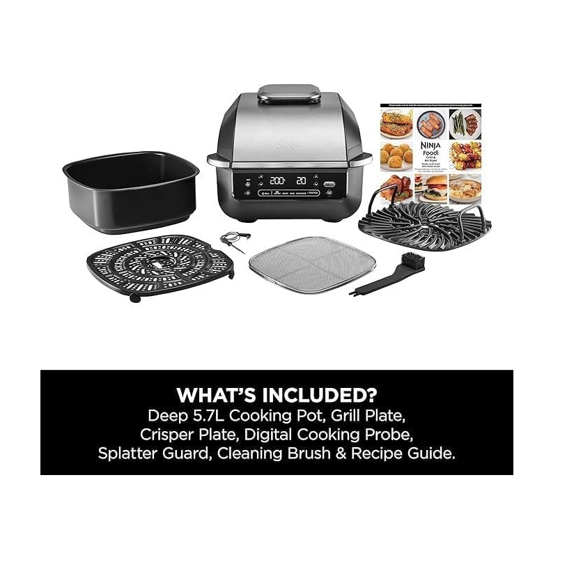 لوازم همراه صفحه گریل, برس جهت نظافت تمام سطوح, دماسنج هوشمند, سبد کریسپر
