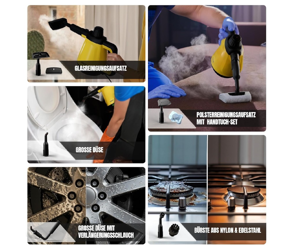 مزیت مهم این مدل داشتن سریهای مختلف است؛ سری باریک برای گوشهها و نقاطی که دسترسی سخت دارند، سری پهن برای کف و دیوار، و سری مخصوص پارچه برای مبل و پرده. همین تنوع باعث میشود یک دستگاه برای کل خانه کافی باشد. طراحی سطلی و وجود چرخهای روان هم حمل و جابجایی آن را ساده کرده و سیستم ایمنی قطع خودکار خیال کاربر را راحت میکند. در نتیجه، بخارشوی هنریچ 8734 انتخابی مناسب برای کسانی است که میخواهند با یک دستگاه جمعوجور، نظافت کامل و ضدعفونی خانه را انجام دهند.
